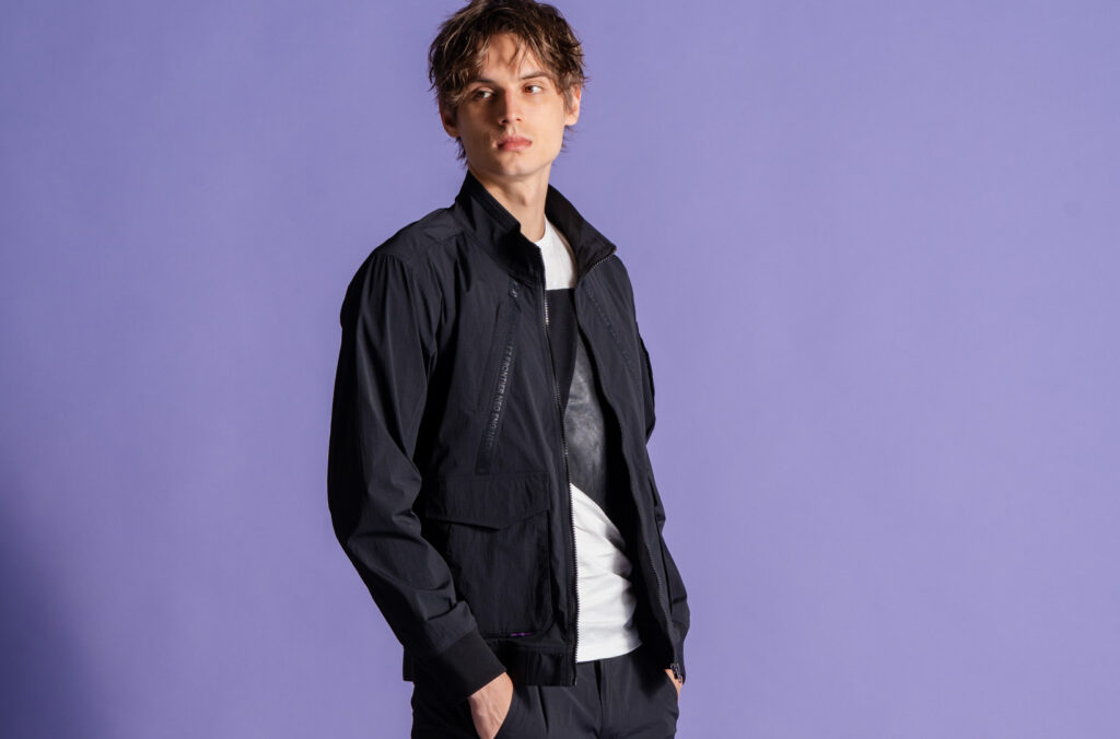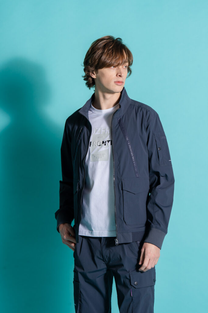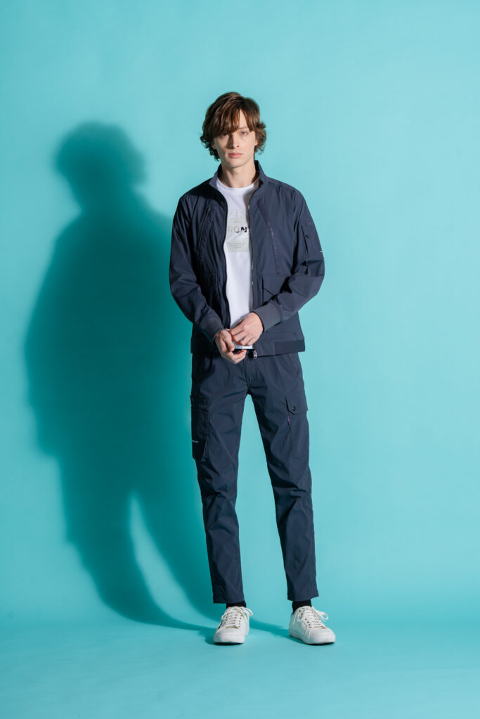 ・ジャケット+カーゴパンツでAラインを演出する個性的なポリエステルデザインテープ使いで、立体的でスポーティかつ高級感を両立した比類ないルックスを実現。