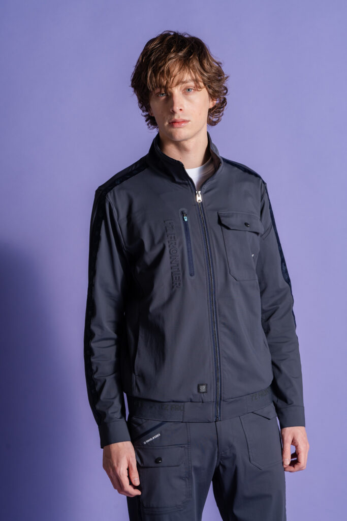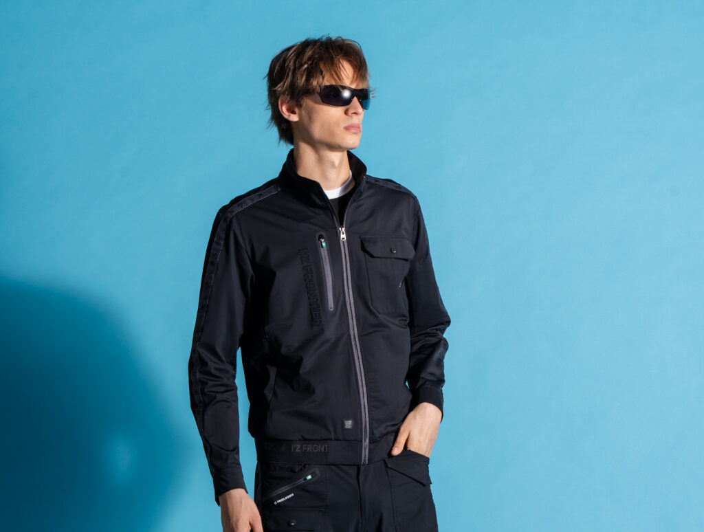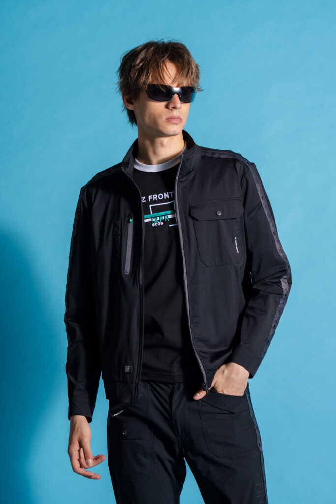 ・右胸にスマホ収納可能な縦型ファスナーポケットを装備。