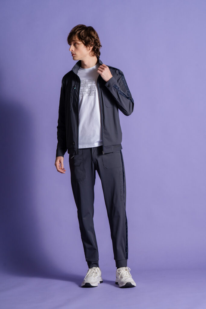 ・フロッキー発泡3Dエンボスのロゴ、両サイドに拘りのジャガードテープなどモード&ラグジュアリーを演出。
