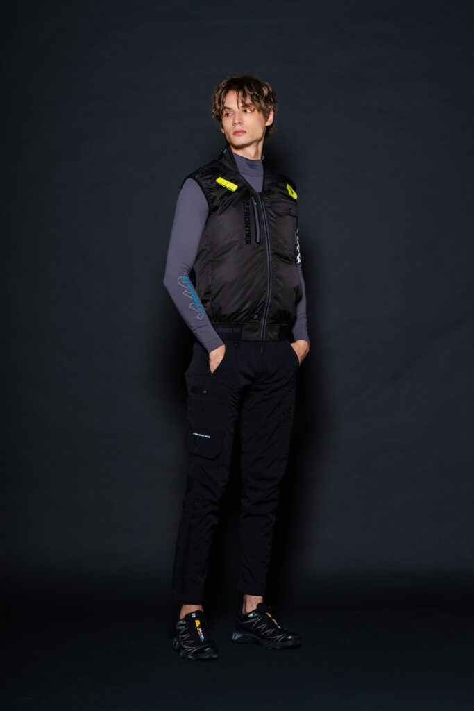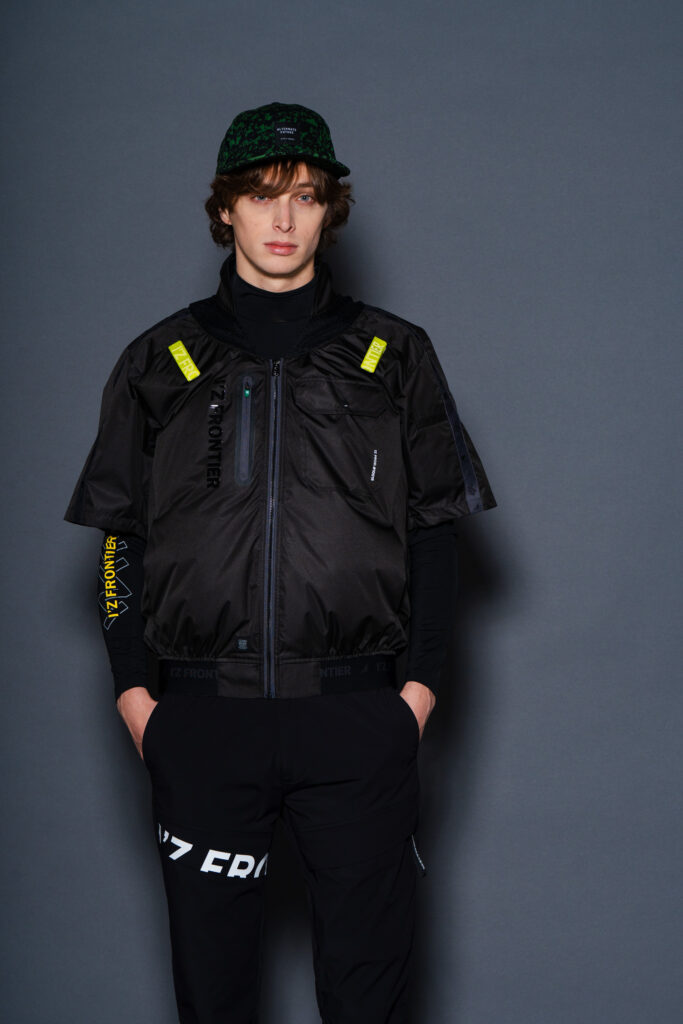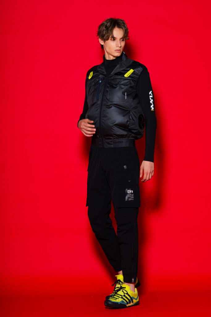 ・ハーネス対応型としてアイコニックなロゴ入りイエローテープを肩口に使用。